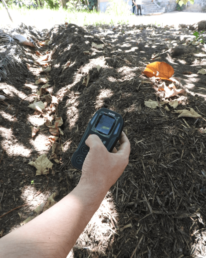 Dispositivo de medição em leira da RenovaTerra Compostagem no Sítio Jardim.